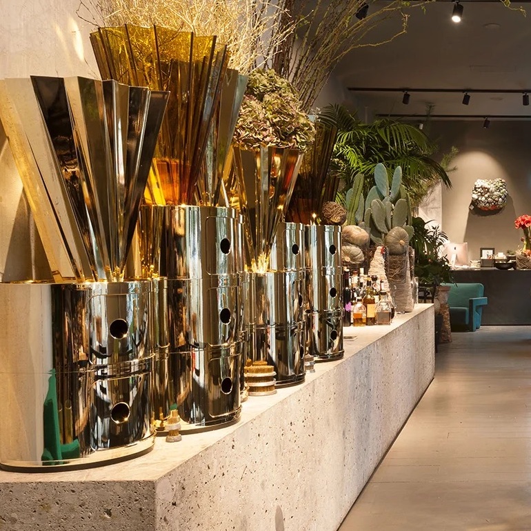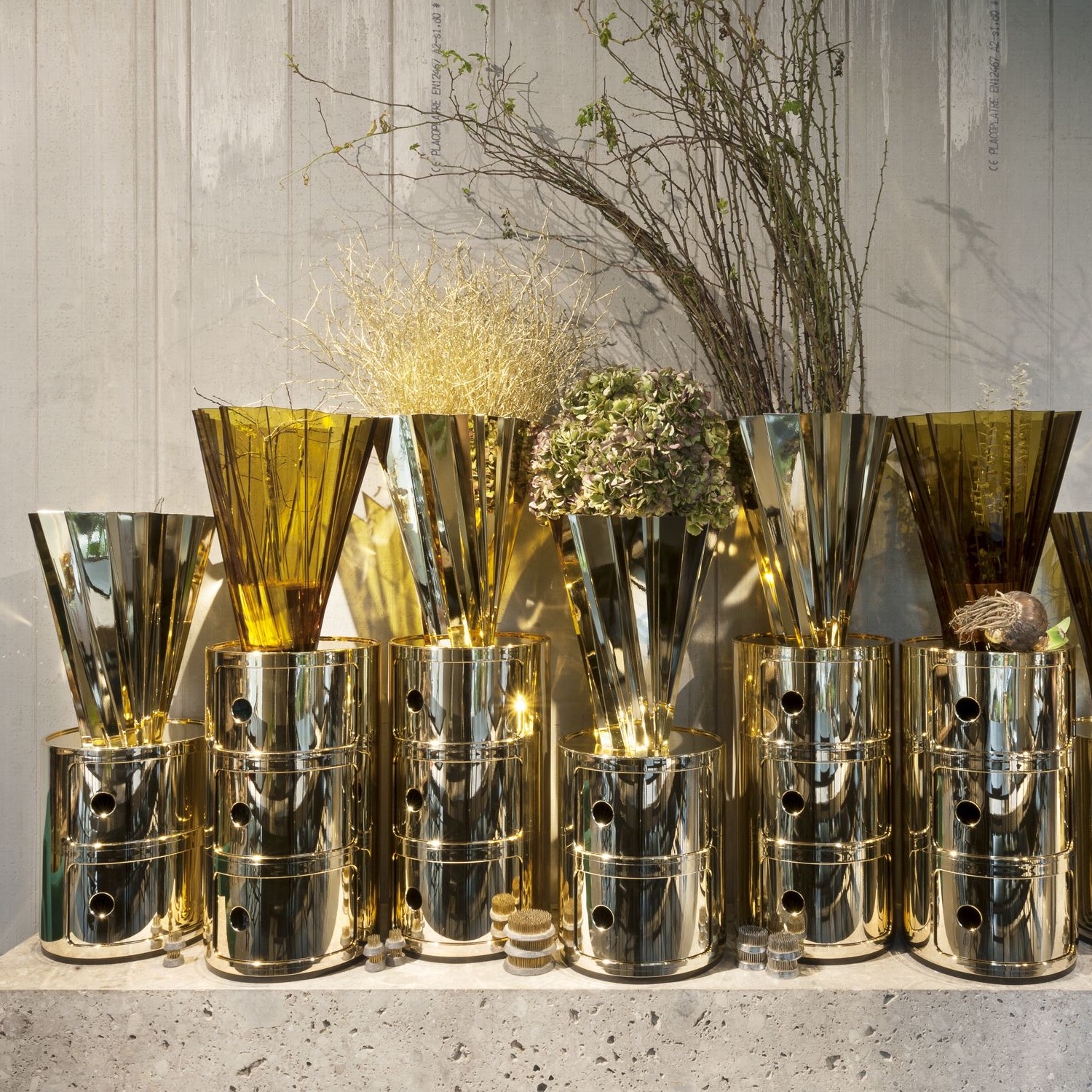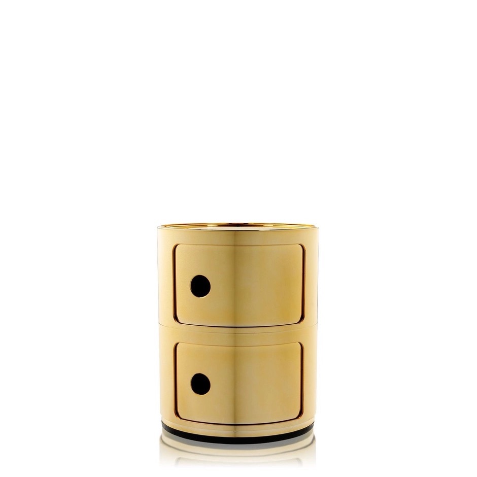 Die Stücke aus der Kollektion »Componibili Metal« bestehen aus zwei oder oder Fächern, sind aus ABS-Polymeren gefertigt und mit einem glänzenden Finish versehen.