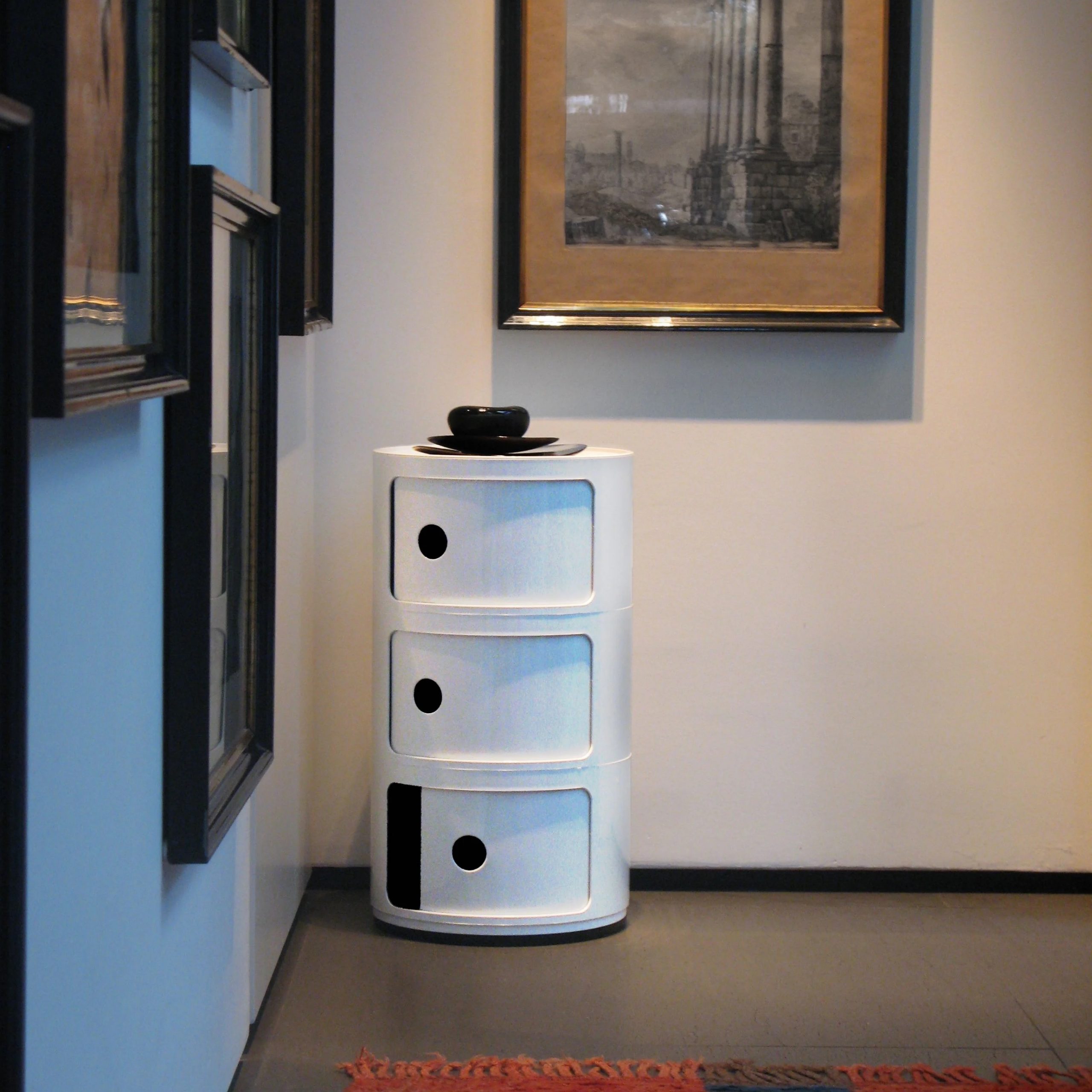 Das Aufbewahrungselement »Componibili« der Marke Kartell ist ein zeitloser Klassiker der Inneneinrichtung. Dank der festen Zusammensetzung aus mehreren Fächern erweist sich »Componibili« als praktisches Zubehör und ist vielseitig einsetzbar – egal, ob als Einzelstück, im Gruppenarrangement oder platzsparend übereinandergestapelt.