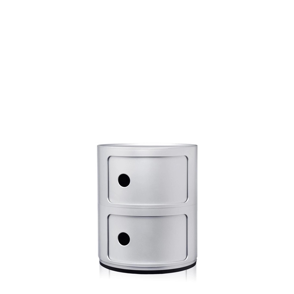 Die Stücke aus der Kollektion »Componibili Classic« bestehen aus zwei, drei oder vier Fächern, sind aus ABS-Polymeren gefertigt und mit einem glänzenden Finish oder einem matten Silberton versehen.