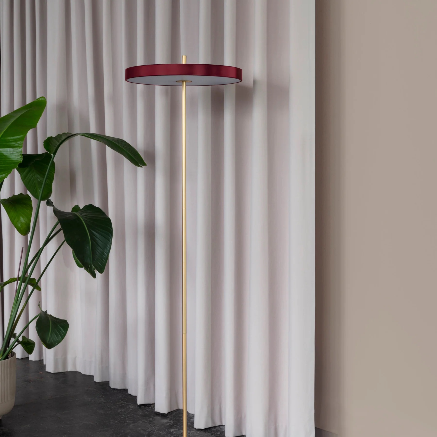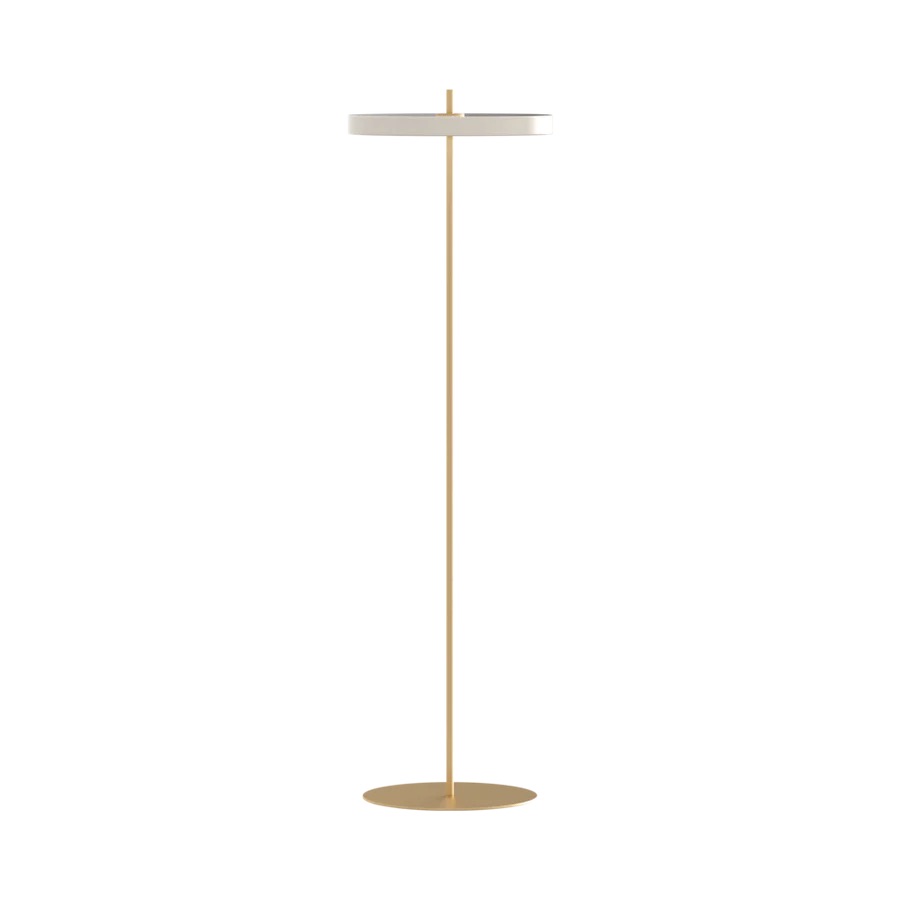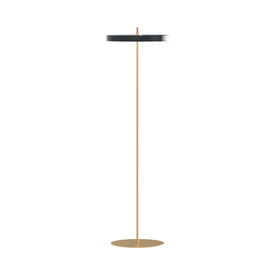 »Asteria« besteht aus Stahl, Aluminium und Acryl. Die Stehleuchte ist dimmbar und wird durch Drehen des oberen Aufsatzes ein- und ausgeschaltet.