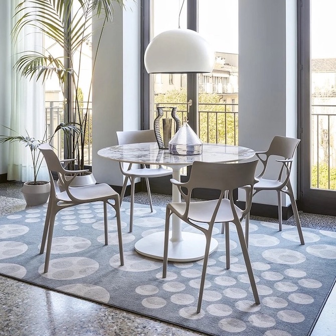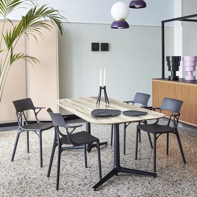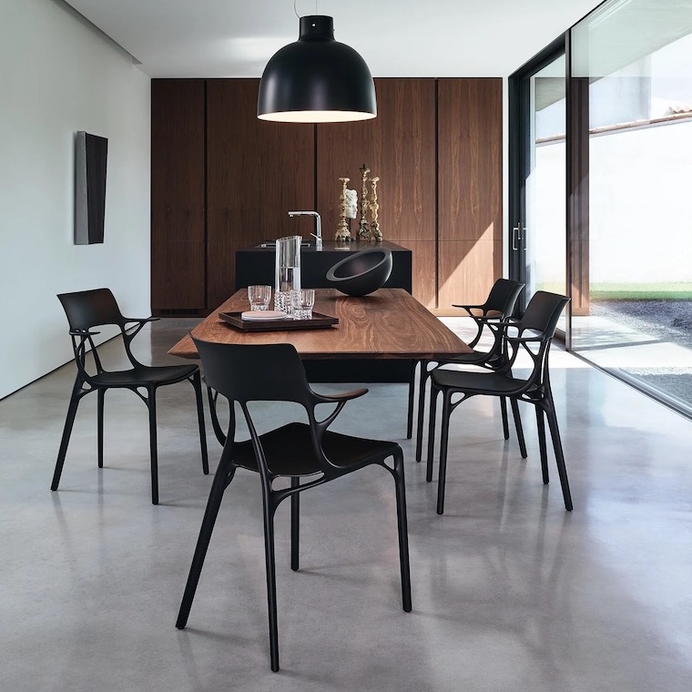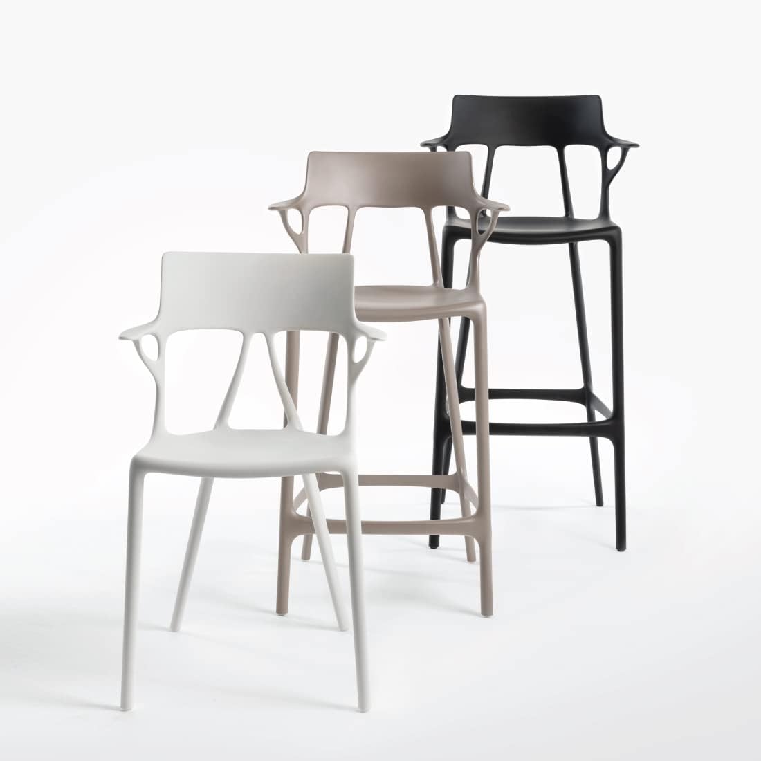 Der Stuhl »A.I.« stammt aus der ersten durch Künstliche Intelligenz konzipierten Kollektion, die im Hause Kartell entstanden ist. Das Resultat ist ein komfortables Produkt von hoher ästhetischer Qualität.